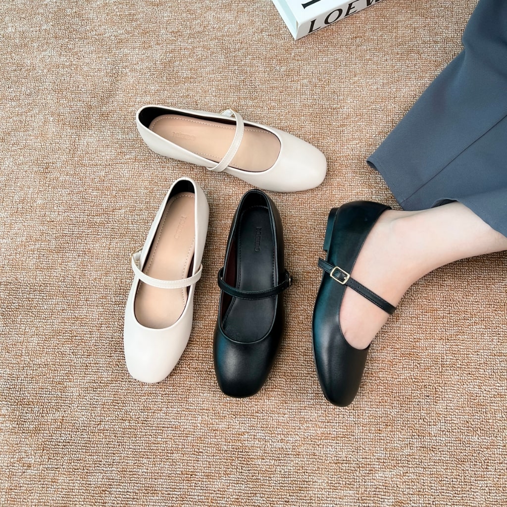 • Ballet Flats (Giày búp bê): Hiện thân của nét nữ tính và dịu dàng. Với thiết kế tối giản và mềm mại, đây là “mảnh ghép” hoàn hảo cho những trang phục công sở nhẹ nhàng như chân váy xếp ly hay váy xòe chữ A. Ballet Flats mang đến vẻ đẹp thanh thoát, giúp quý cô giữ được sự trẻ trung nhưng vẫn rất mực thanh lịch.